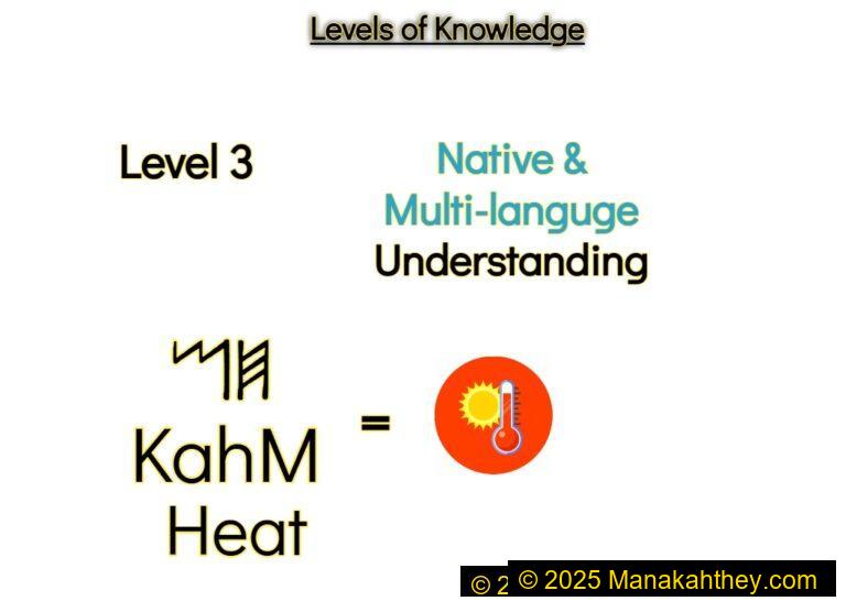 How can you know this word “KahM” without knowing the science behind heat? This language is not like any other language. This language will open your mind and make you connect information. Because you know KahM means “heat” and you know some of the information contained in this lesson, you will be able to identify similar words. That is empowering.